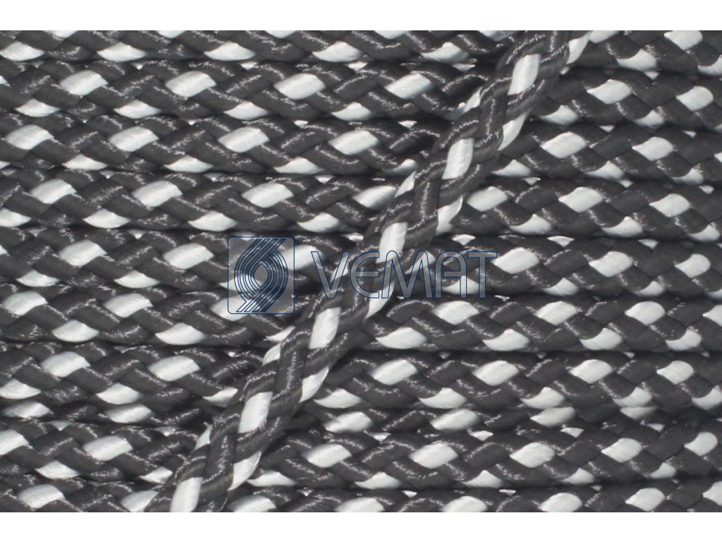 Splétaná osmipramenná šňůra o průměru 6 mm. Protože je vyrobená z polypropylenu, který má hustotu nižší než voda, plave na vodě.