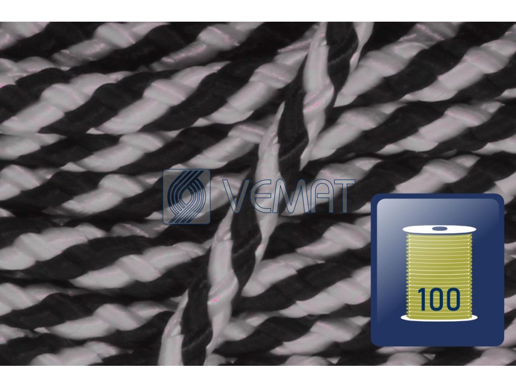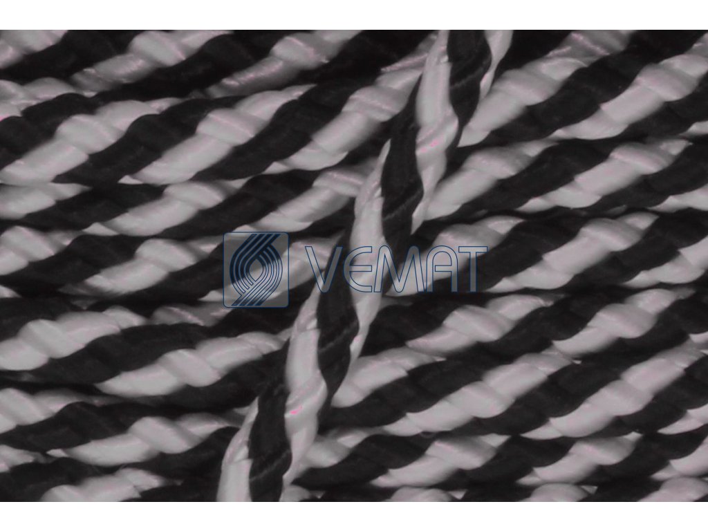 Splétaná osmipramenná šňůra o průměru 6 mm. Protože je vyrobená z polypropylenu, který má hustotu nižší než voda, plave na vodě.