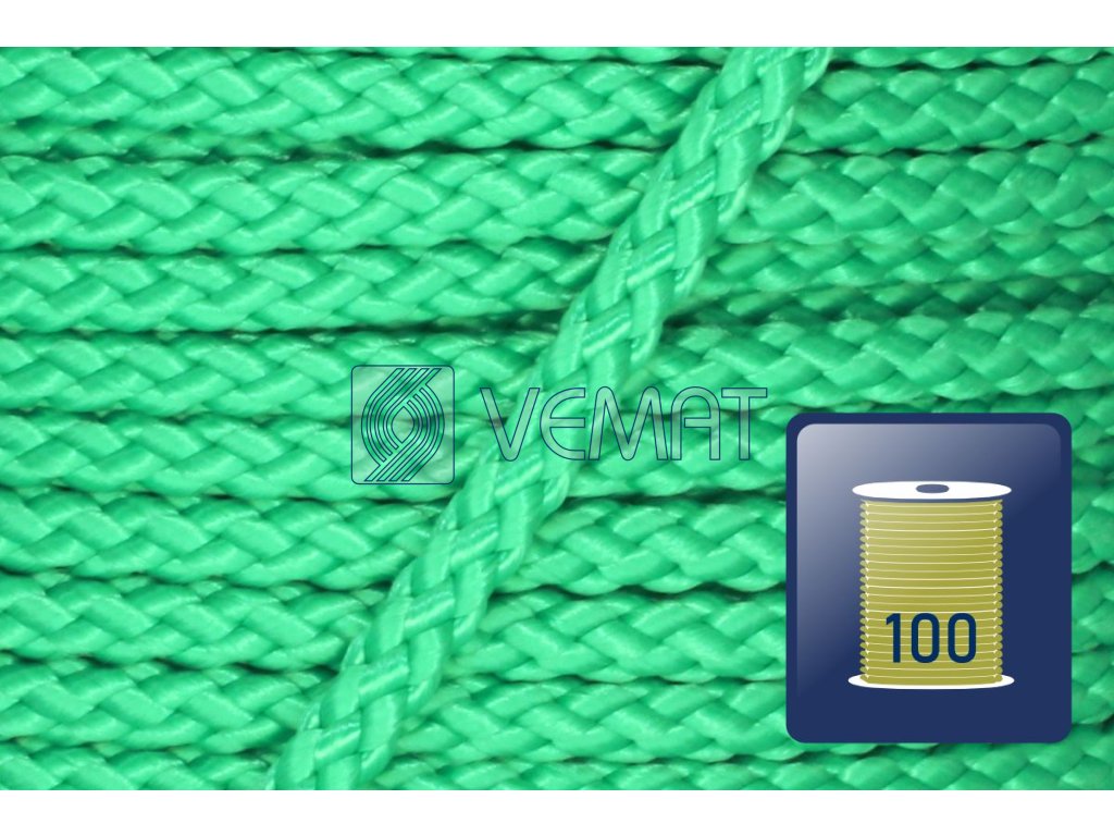 Splétaná osmipramenná šňůra o průměru 6 mm. Protože je vyrobená z polypropylenu, který má hustotu nižší než voda, plave na vodě.