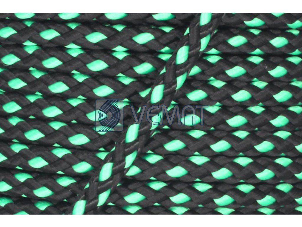 Splétaná osmipramenná šňůra o průměru 6 mm. Protože je vyrobená z polypropylenu, který má hustotu nižší než voda, plave na vodě.