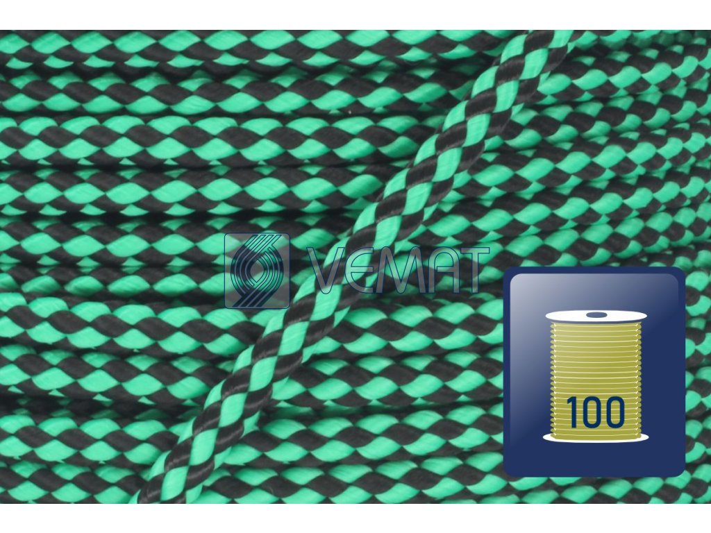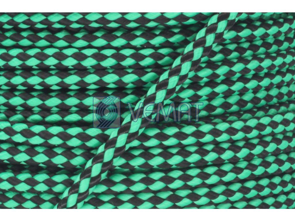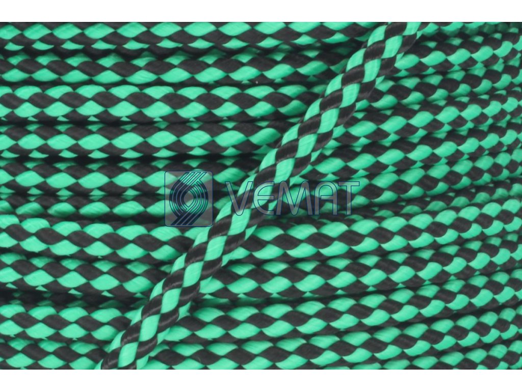 Splétaná osmipramenná šňůra o průměru 6 mm. Protože je vyrobená z polypropylenu, který má hustotu nižší než voda, plave na vodě.