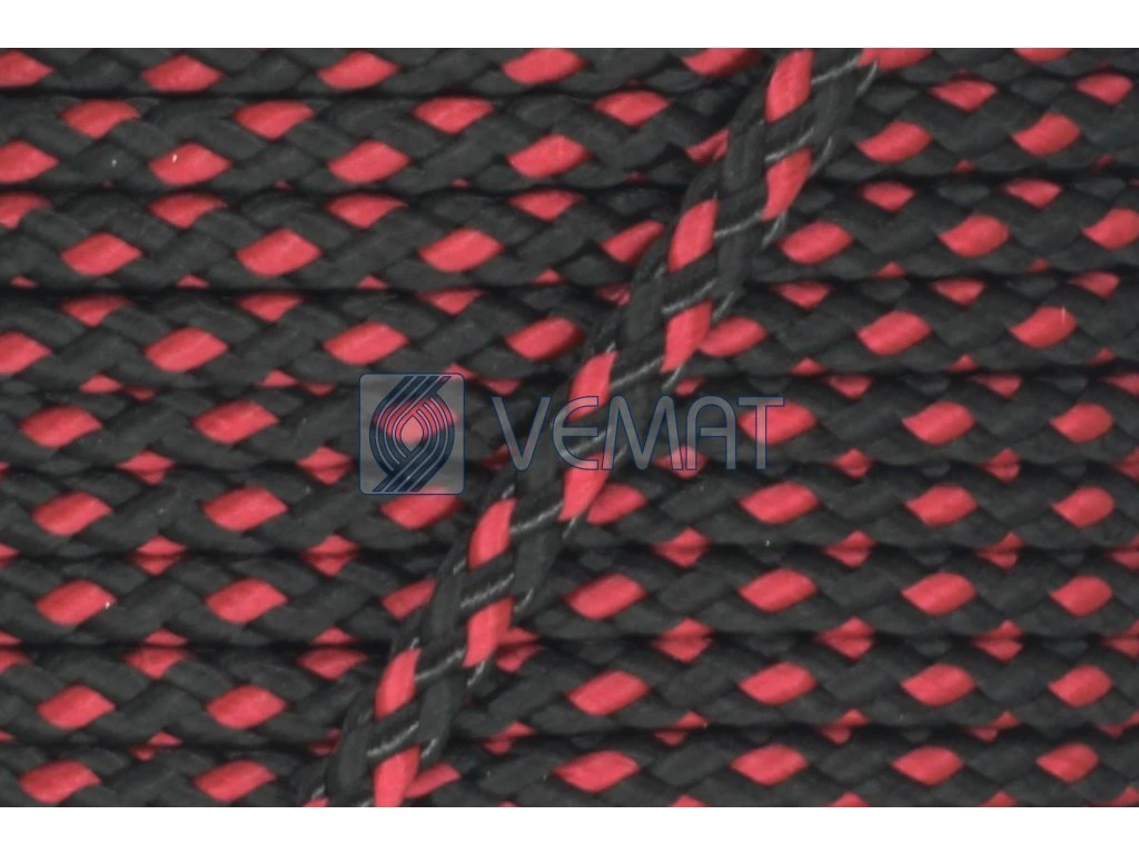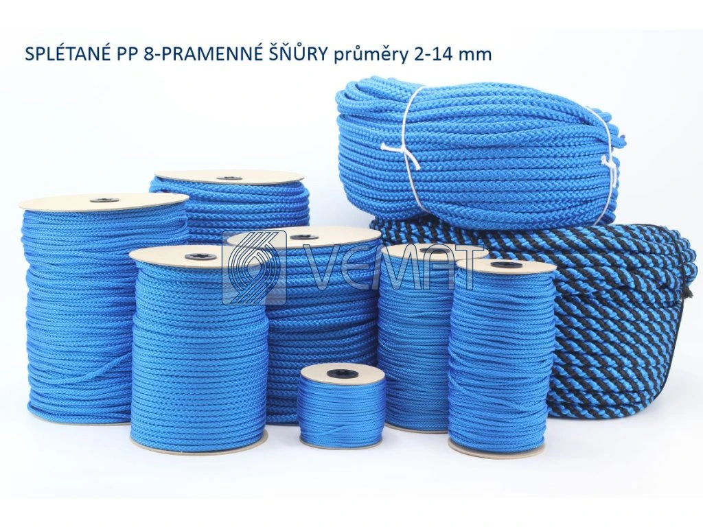 Splétaná osmipramenná šňůra o průměru 6 mm. Protože je vyrobená z polypropylenu, který má hustotu nižší než voda, plave na vodě.