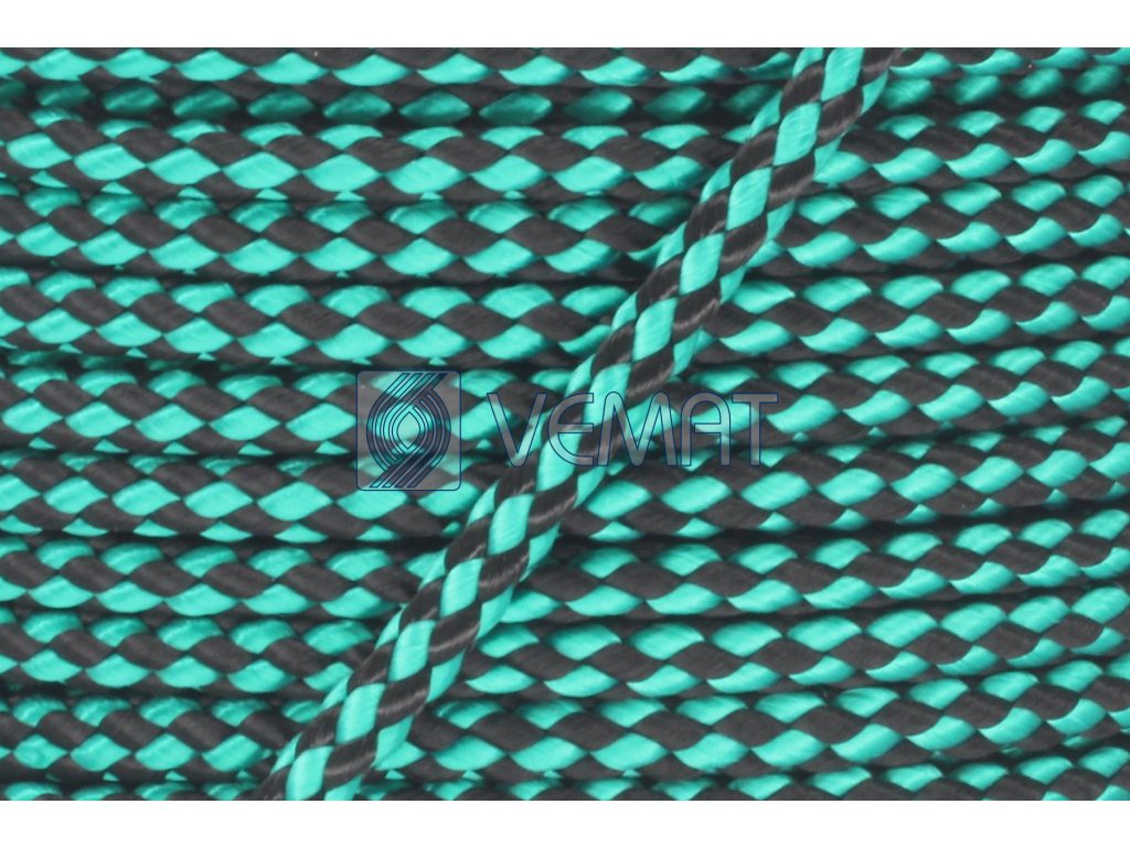 Splétaná osmipramenná šňůra o průměru 6 mm. Protože je vyrobená z polypropylenu, který má hustotu nižší než voda, plave na vodě.