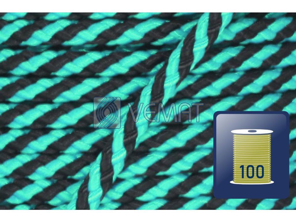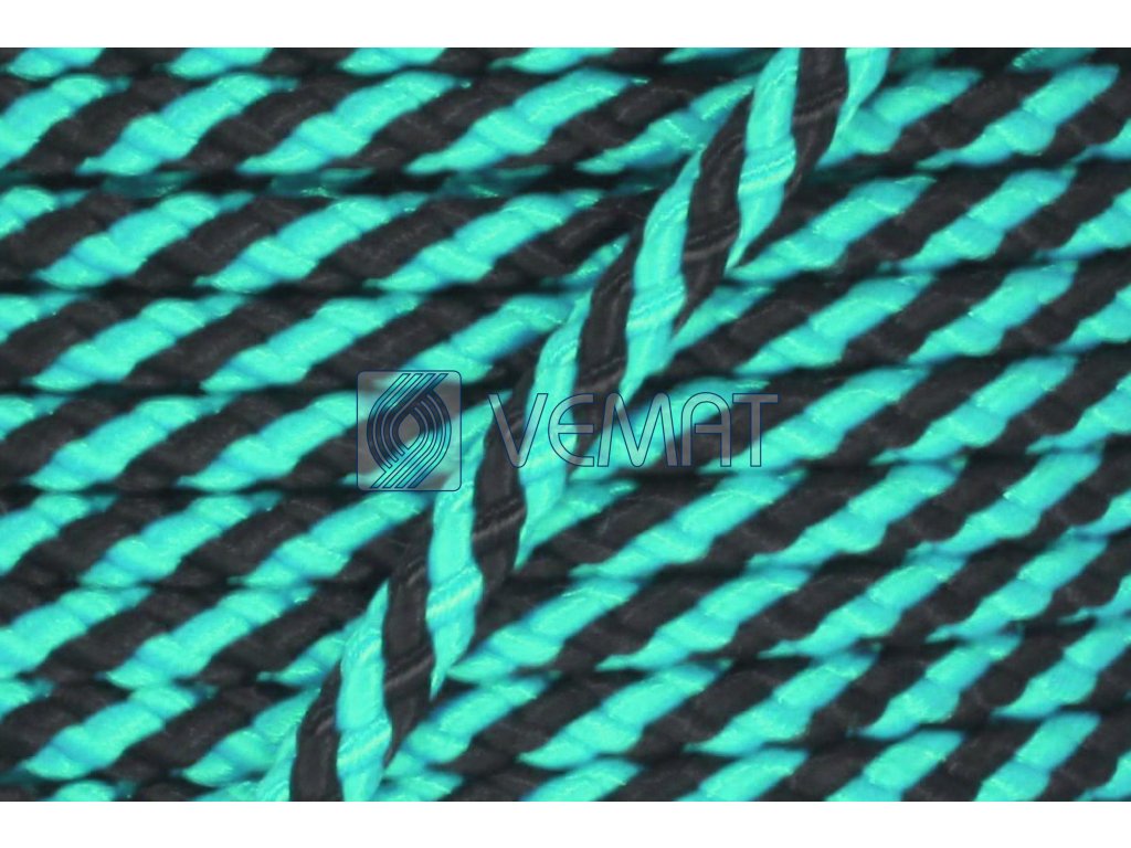 Splétaná osmipramenná šňůra o průměru 6 mm. Protože je vyrobená z polypropylenu, který má hustotu nižší než voda, plave na vodě.