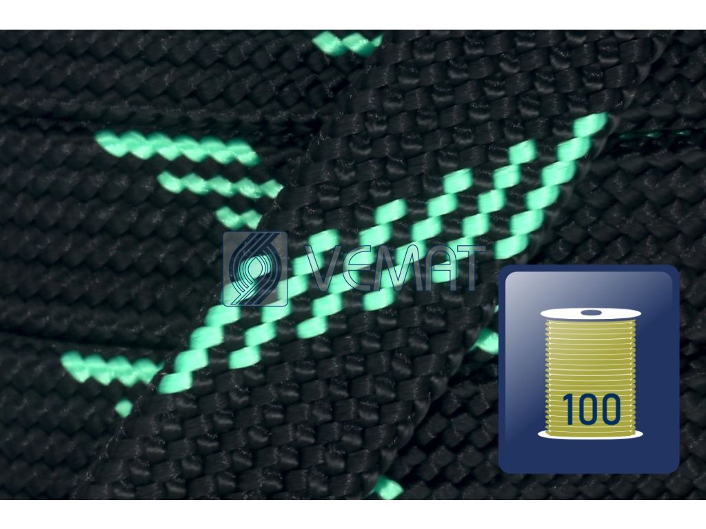 PP dutina plochá 25mm-černá/sv.zelená-cívka 100m