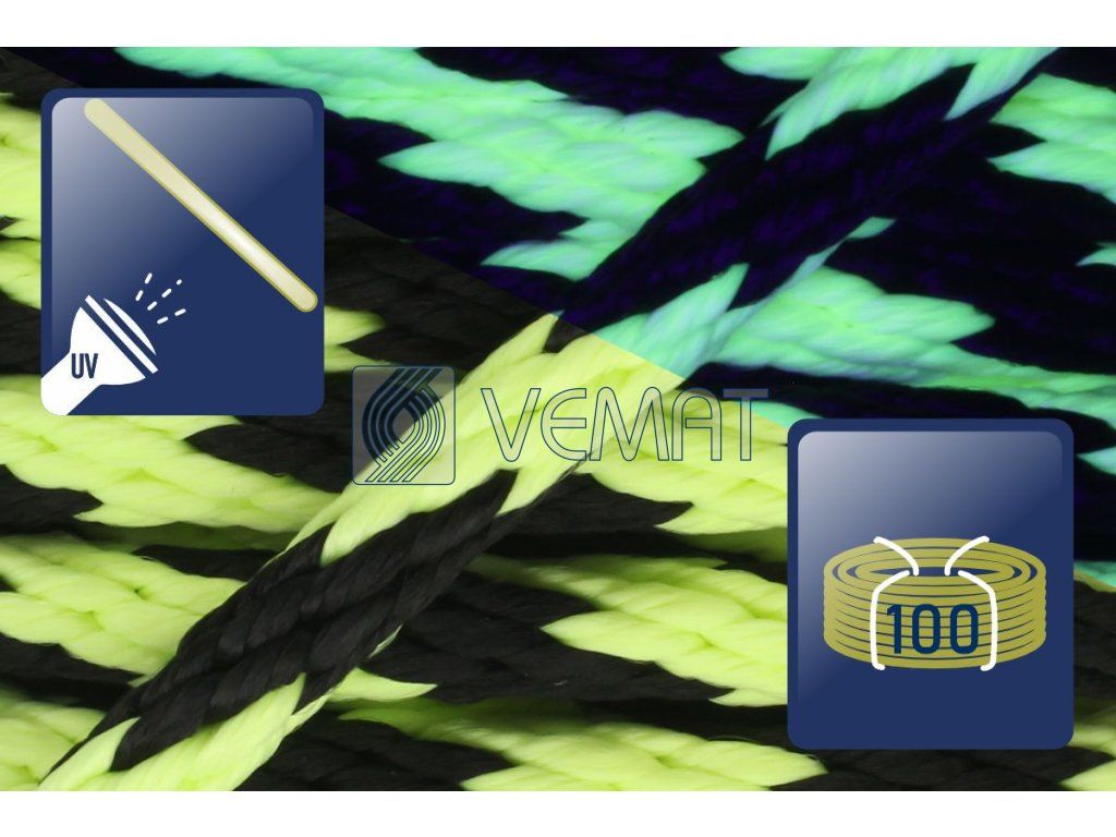 Spiroidně splétaná dvanáctipramenná šňůra o průměru 14 mm. Protože je vyrobená z polypropylenu, který má hustotu nižší než voda, plave na vodě.