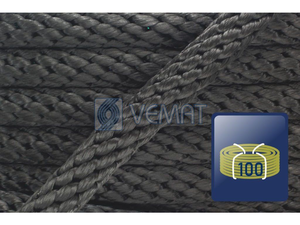 12pramenná šňůra s jádrem o průměru 16 mm, vyrobená technologií spiroidní splétání. Protože je vyrobená z polypropylenu, který má hustotu nižší než voda, plave na vodě.