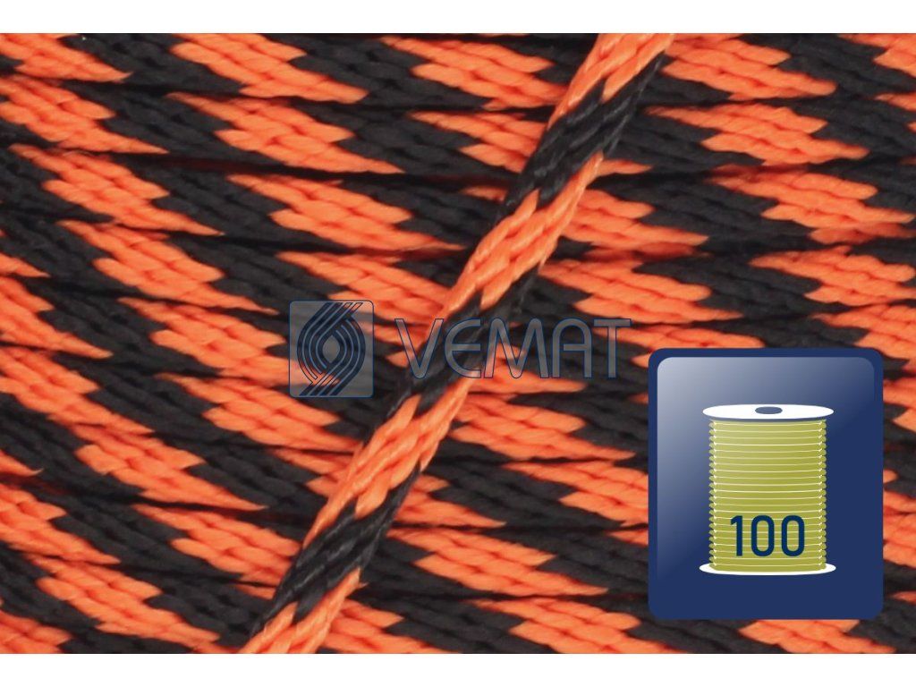 PP spiroidní 6mm-černá/oranžová-cívka 100m