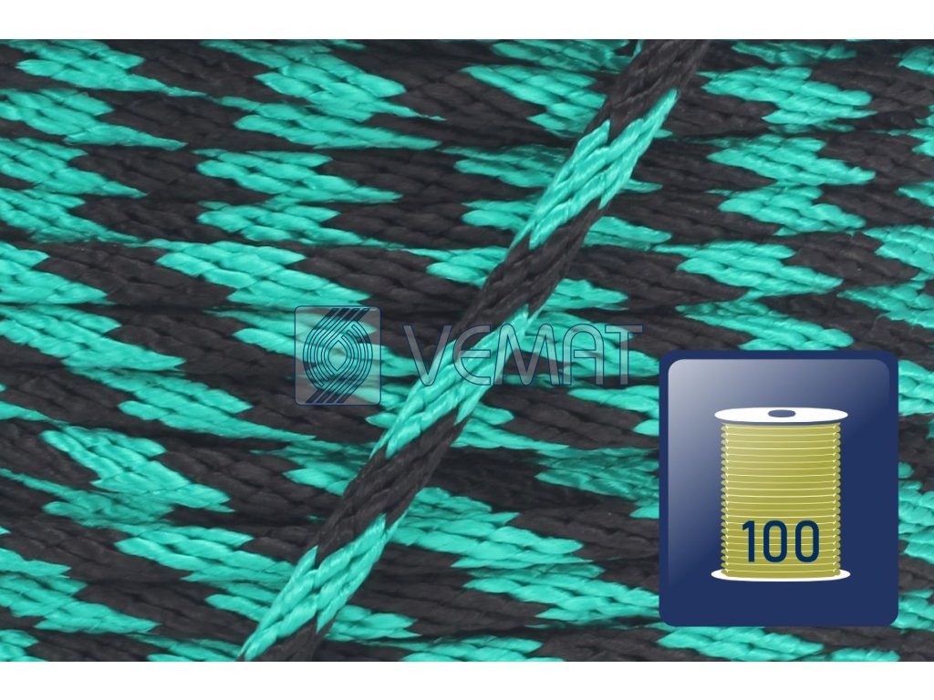 PP spiroidní 6mm-černá/zelená-cívka 100m