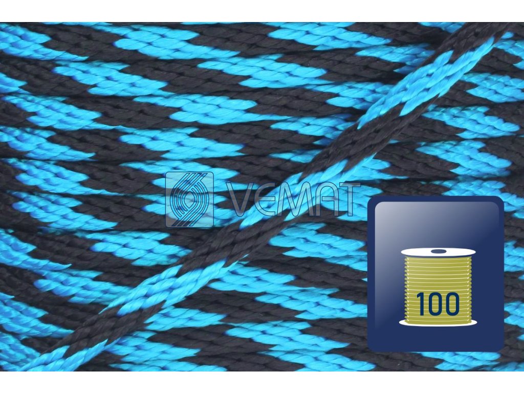 PP spiroidní 7mm-černá/tyrkysová-cívka 100m