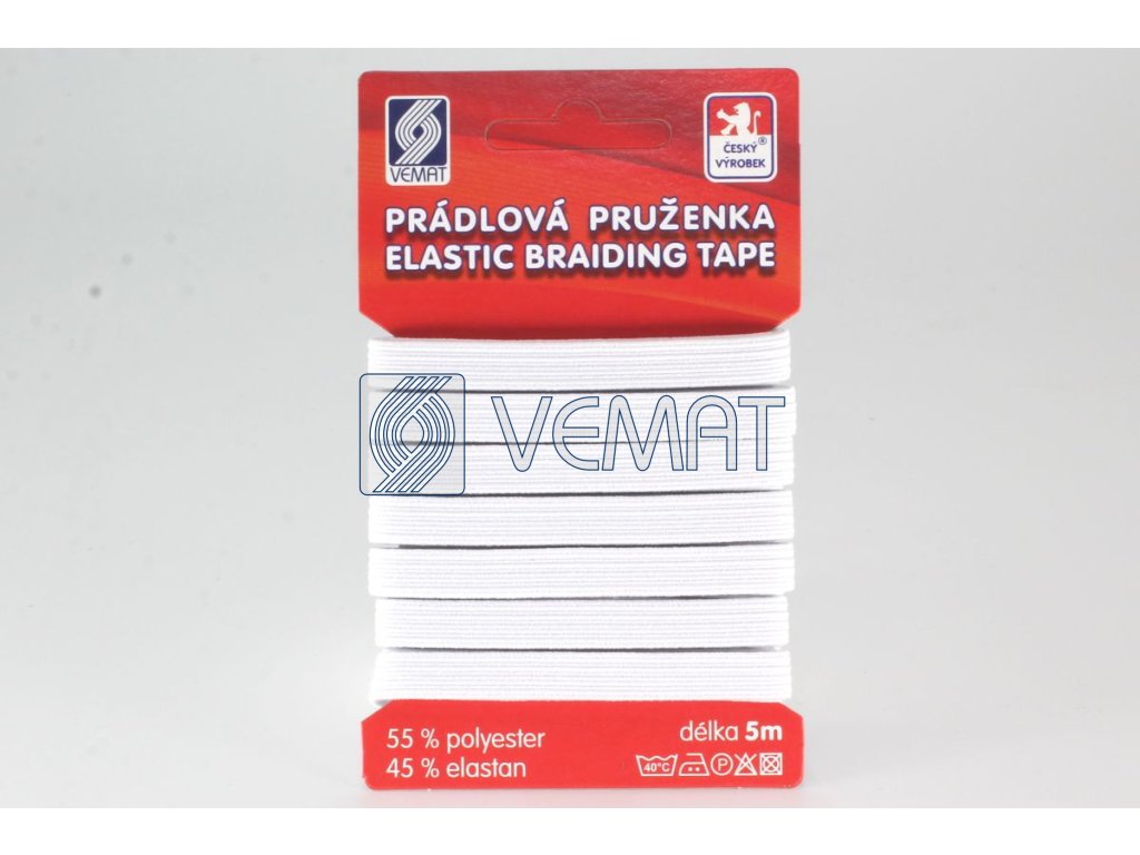 Prádlová pruženka 7,5mm-bílá-karta 5m
