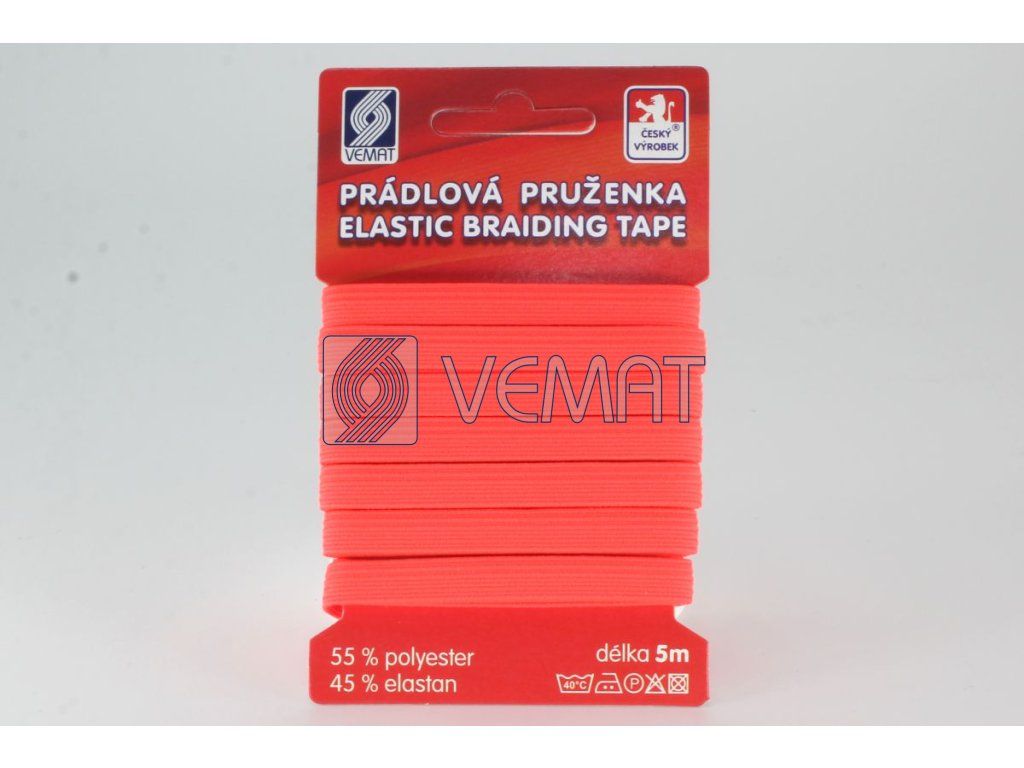 Prádlová pruženka 7,5mm-fl.červená-karta 5m