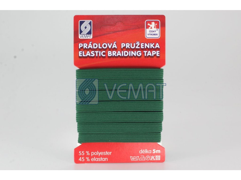 Prádlová pruženka 7,5mm-lesní.zel.-karta 5m
