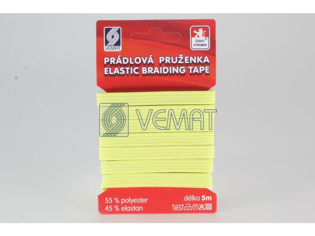 Prádlová pruženka 7,5mm-petrkl.žlutá-karta 5m